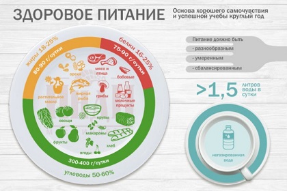Ежедневное меню школьника, по рекомендациям института питания НИИ РАМН и Институт питания, биотехнологии и безопасности пищи (Научно-практический журнал «Вопросы питания», 2017-2018), должно быть сбалансированным по соотношению белков, жиров и углеводов. Главный строительный материал для всего организма - белок, - содержится в мясе, рыбе, яйцах, молоке и молочных продуктах, бобовых и грибах.